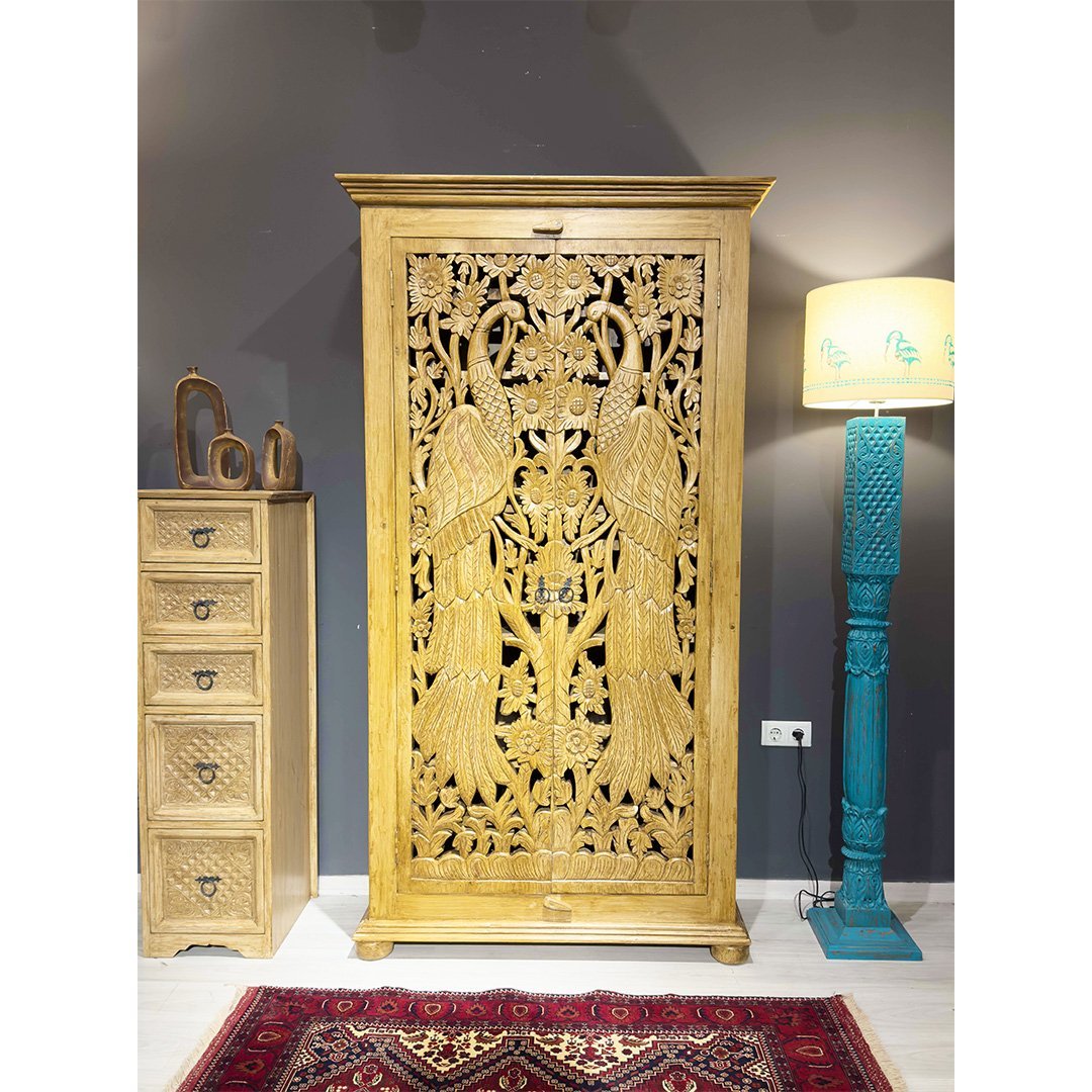 ETNİK MODEL MANGO AĞACI EL OYMA DOLAP H0014